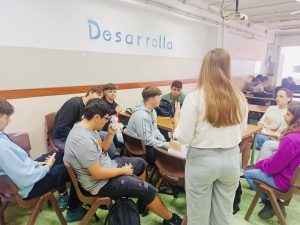 En la asignatura de inglés en 1º BACH hemos aprendido cómo hacer una redacción en la que plasmar nuestra opinión sobre un tema de actualidad. Suena aburrido, pero con la ayuda de Lauren, nuestra auxiliar de conversación, lo hemos trabajado a través de un debate sobre si los menores de edad deberían tener acceso a las redes sociales. Hemos aprendido mucho y nos lo hemos pasado aún mejor.